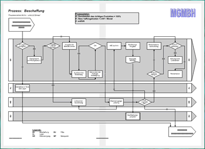 Der jeweilige Musterprozess (Visiovorlage) ist so aufgebaut, dass Sie auf Basis dieser DIN EN ISO-9000-konformen Mustervorlage mit wenig Aufwand Ihren unternehmensspezifischen Prozess für Ihr Qualitätsmanagement im Bereich Beschaffung erstellen werden.