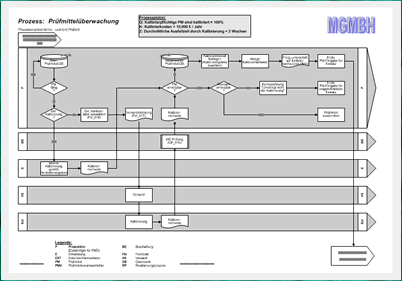 Der jeweilige Musterprozess (Visiovorlage) ist so aufgebaut, dass Sie auf Basis dieser DIN EN ISO-9000-konformen Mustervorlage mit wenig Aufwand Ihren unternehmensspezifischen Prozess für Ihr Qualitätsmanagement bei der Prüfmittelüberwachung bzw. Prüfmittelverwaltung erstellen werden.